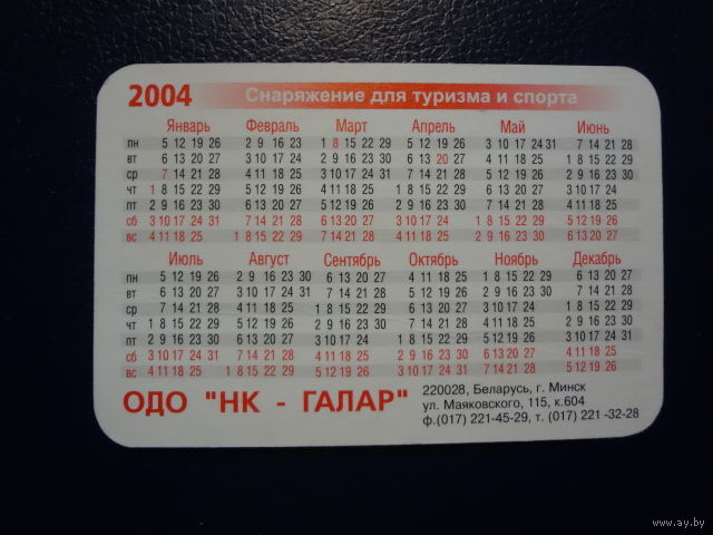 Календарик 2004 г. Лучший отдых с нашим снаряжением.