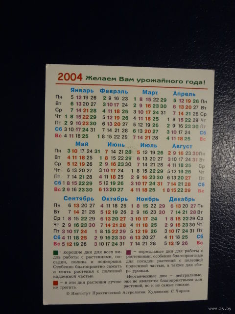 Календарик 2004 г. Лунный календарь для садоводов и огородников.