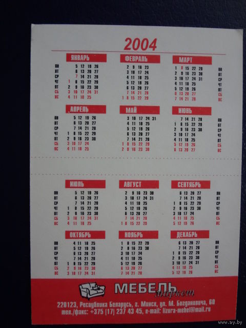 Календарик 2004 г. Мебельмаркет.