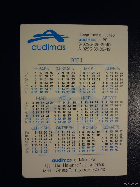 Календарик 2004 г. Одежда для спорта и активного образа жизни.