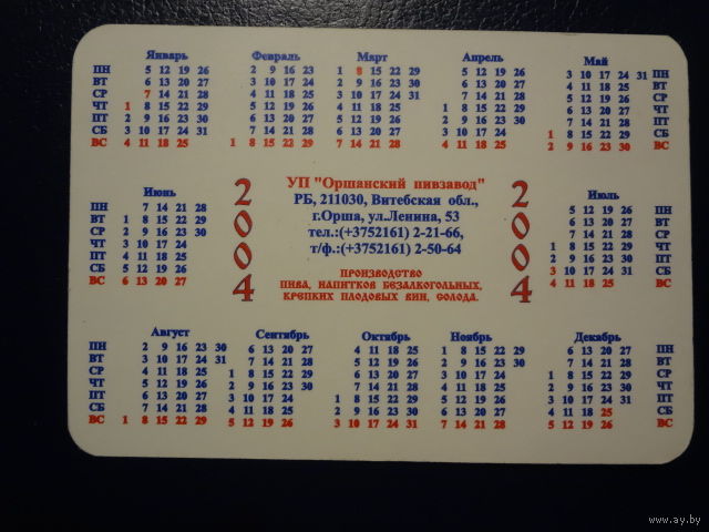 Календарик 2004 г. Пивка? Оршанский пивзавод.