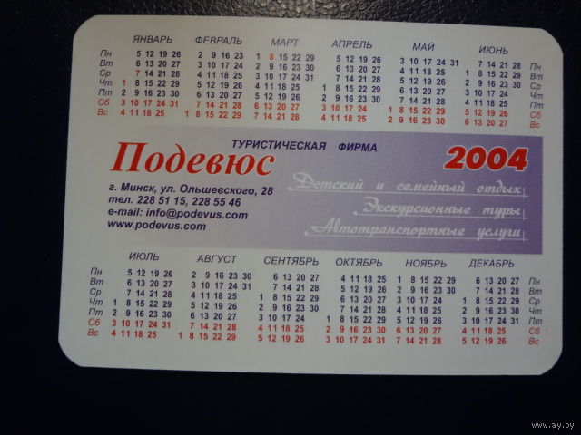 Календарик 2004 г. Подевюс. Виндсерфинг.