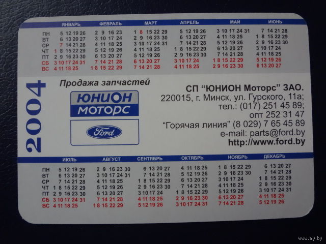 Календарик 2004 г. Продажа запчастей.