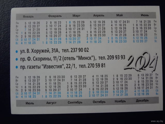 Календарик 2004 г. Салон связи Спикер.