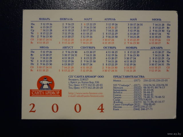 Календарик 2004 г. Санта Бремор. Счастье есть!