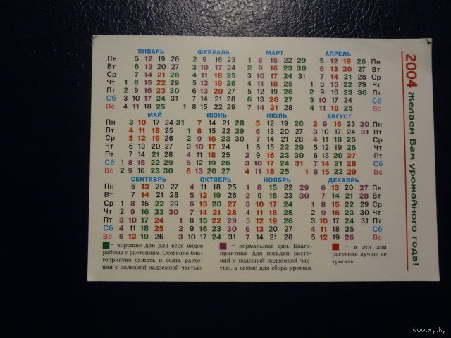 Календарик 2004 г. Сельскохозяйственный алендарь.