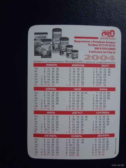 Календарик 2004 г. Сладкий Лео. Заменитель сахара.