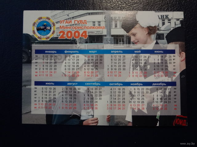 Календарик 2004 г. УГАИ ГУВД Мингорисполкома.