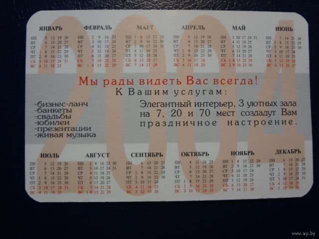 Календарик 2004 г. УП Комплекс им. П.М. Машерова.