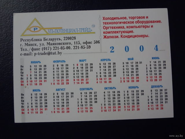 Календарик 2004 г. УП Потенциал-трейд.