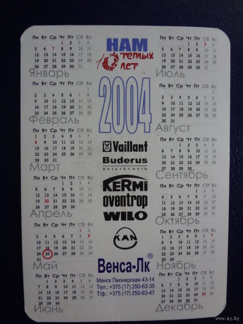 Календарик 2004 г. Венса-Лк. Нам 10 теплых лет.