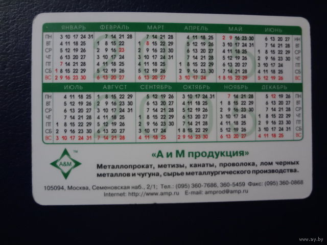 Календарик 2005 г. А и М продукция.
