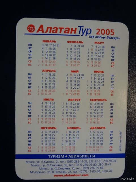 Календарик 2005 г. Алатан Тур. Коса.