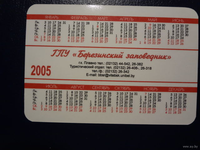 Календарик 2005 г. Березинский заповедник. Гостиничный комплекс Плавно.
