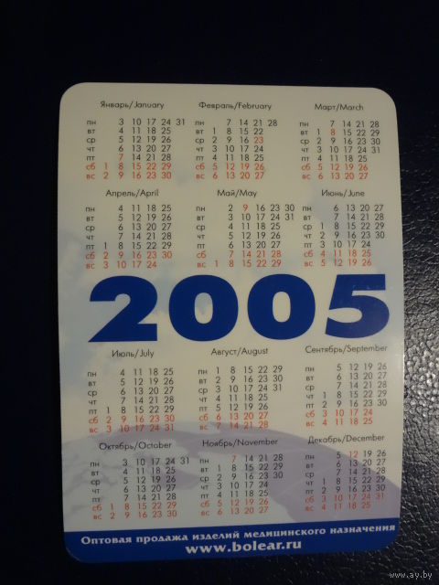 Календарик 2005 г. Болеар. Медицинские изделия для всей семьи.