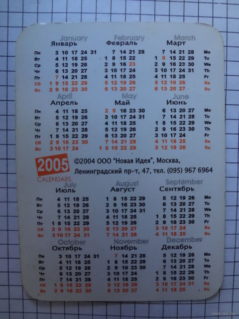 Календарик 2005 г. BUGATTI EB18.