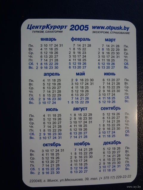 Календарик 2005 г. ЦентрКурорт. Виды достопримечательностей.