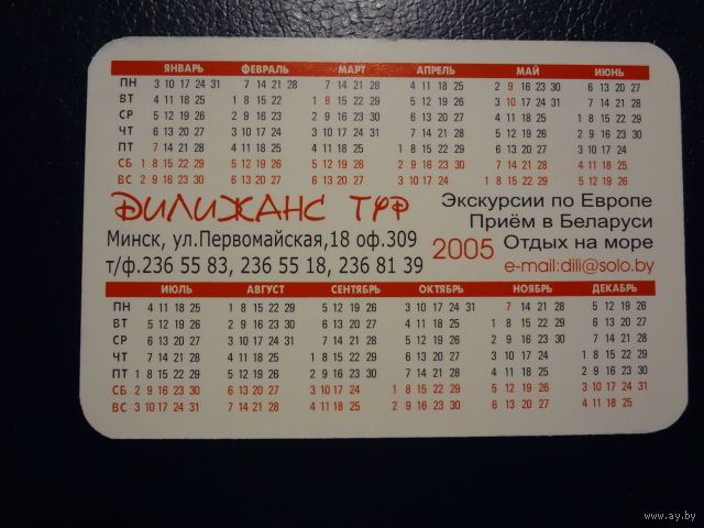 Календарик 2005 г. Дилижанс тур. Путешествуй с нами!