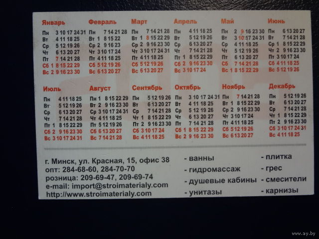 Календарик 2005 г. ИмпортСтройМатериалы.