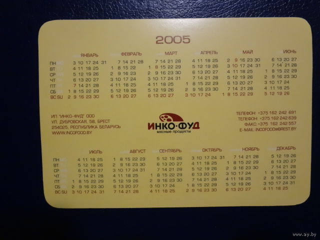 Календарик 2005 г. Инко-Фуд. Мясные продукты.