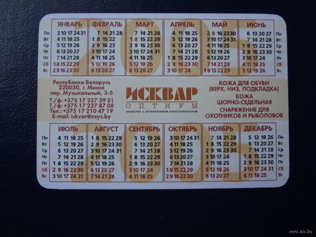 Календарик 2005 г. Исквар оптиум.