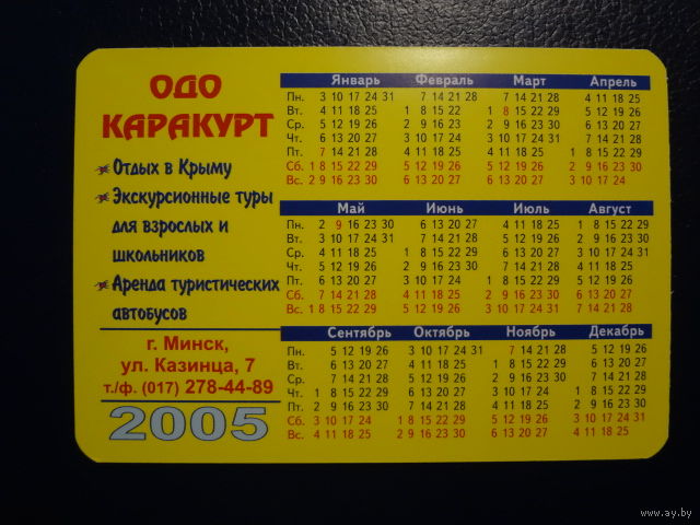 Календарик 2005 г. Каракурт. Турист