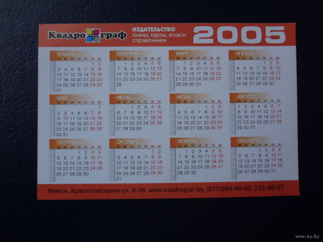 Календарик 2005 г. Квадрограф. Есть 10000 телефонных номеров.