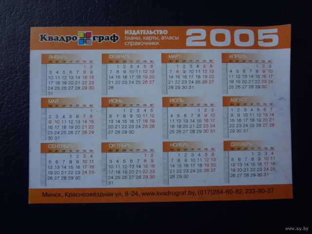 Календарик 2005 г. Лучшие атласы издательства Квадрограф.