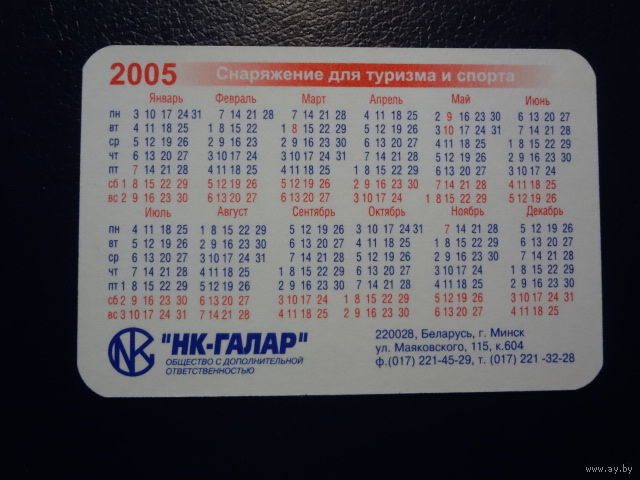 Календарик 2005 г. Лучший отдых с нашим снаряжением (1).