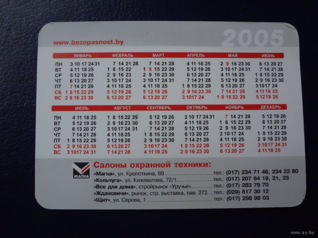 Календарик 2005 г. Магна. Комплексные системы безопасности и охраны.
