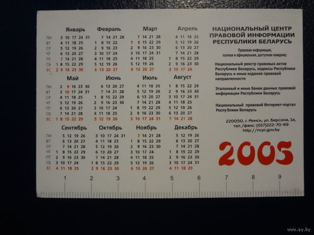 Календарик 2005 г. Национальный центр правовой информации РБ.