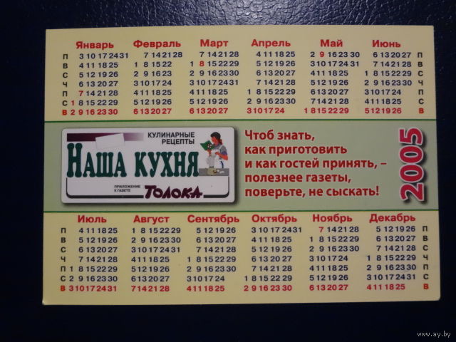 Календарик 2005 г. Наша кухня. Приложение к газете Толока.