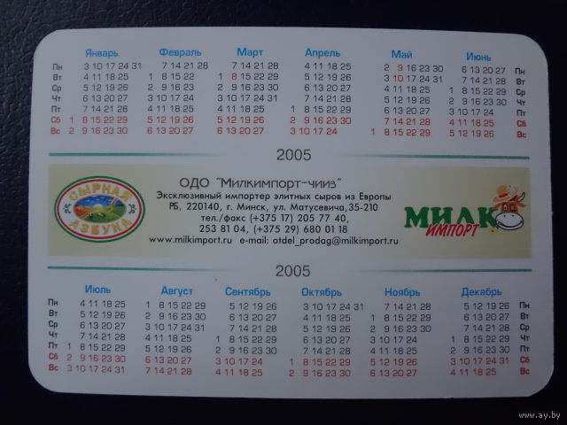 Календарик 2005 г. ОДО Милкимпорт-чииз. Сырная азбука.