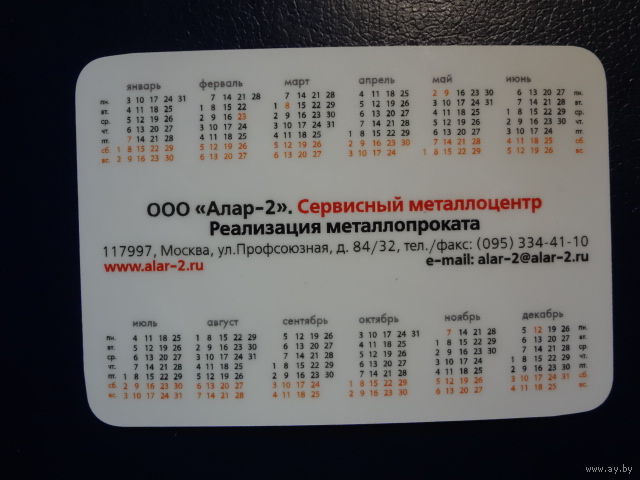 Календарик 2005 г. ООО Алар-2.