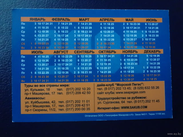 Календарик 2005 г. Pegas. Ты записался дайвером?!