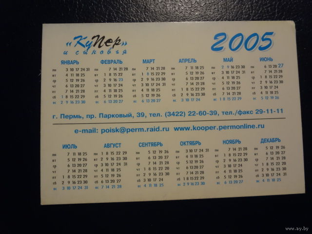 Календарик 2005 г. Производство и реализация рыболовных товаров.