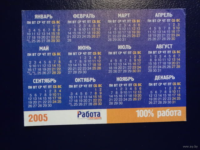 Календарик 2005 г. Работа вчера, завтра, сегодня.