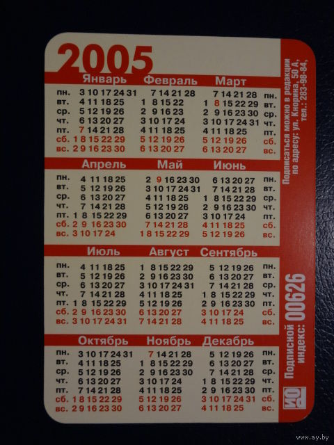 Календарик 2005 г. Развлечения и отдых. На неделю Минск твой.