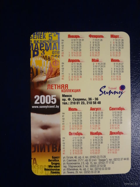 Календарик 2005 г. Санни Трэвел. Летняя коллекция.