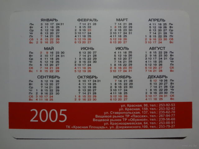 Календарик 2005 г. Сеть магазинов обуви. Степ.
