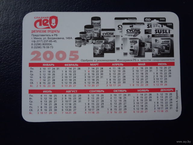 Календарик 2005 г. Сладкий Лео. Два зеркала.