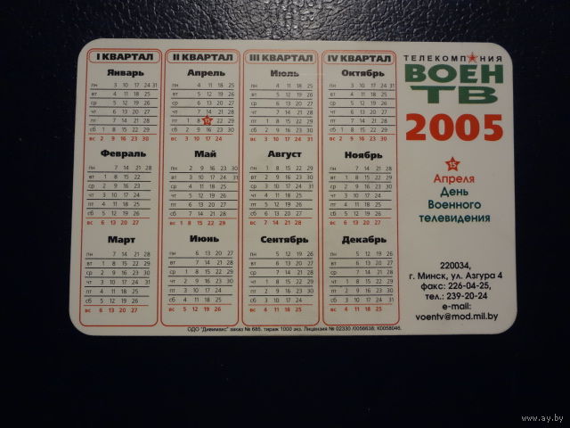 Календарик 2005 г. Телекомпания ВоенТВ.
