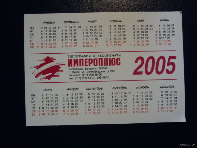 Календарик 2005 г. Типография флексопечати Импероплюс.