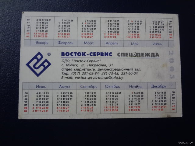 Календарик 2005 г. Восток - сервис. Спецодежда.