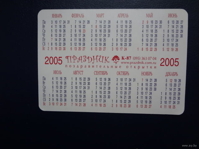 Календарик 2005 г. Ярких событий, сочных открытий.