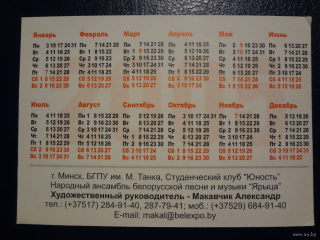 Календарик 2005 г. Ярыца. Народны ансамбль беларускай песні і музыкі.