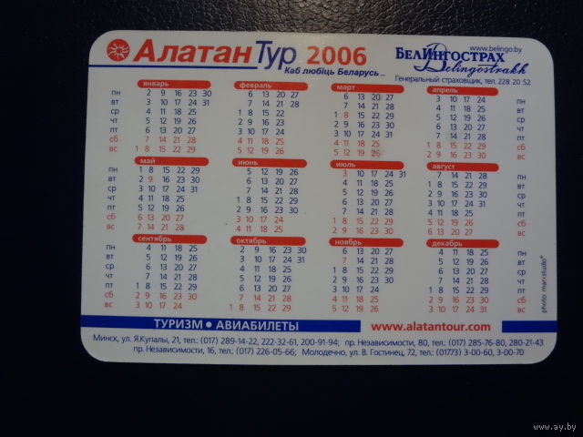 Календарик 2006 г. Алатан Тур. Каб любіць Беларусь...
