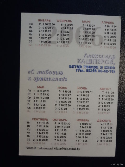 Календарик 2006 г. Александр Кашперов. С любовью к зрителям!