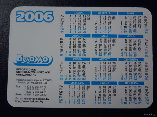 Календарик 2006 г. БелОМО. Узлы тормозных систем.