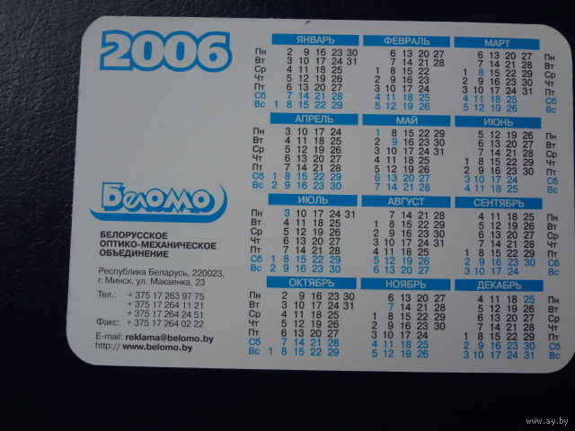 Календарик 2006 г. БелОМО. Здания.
